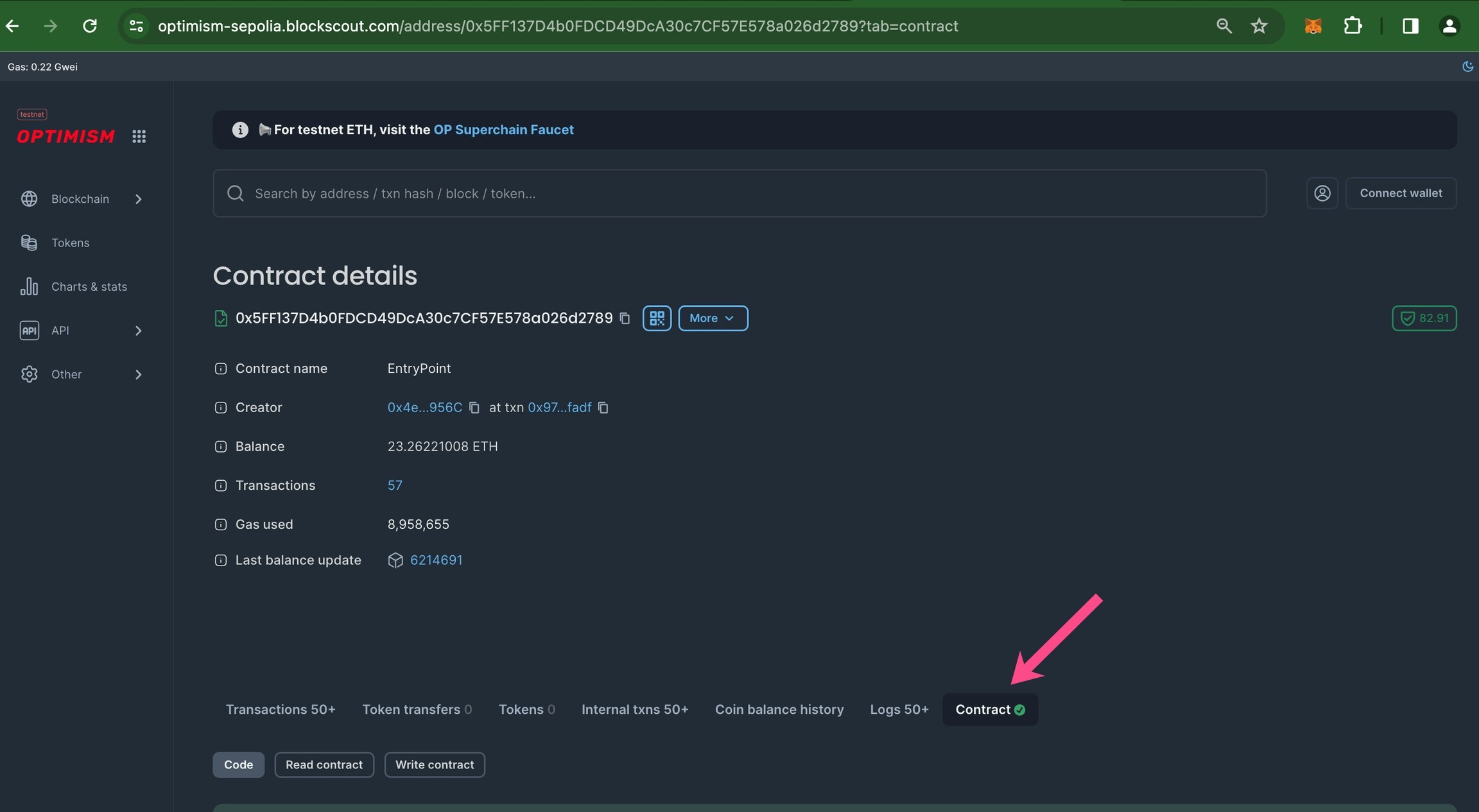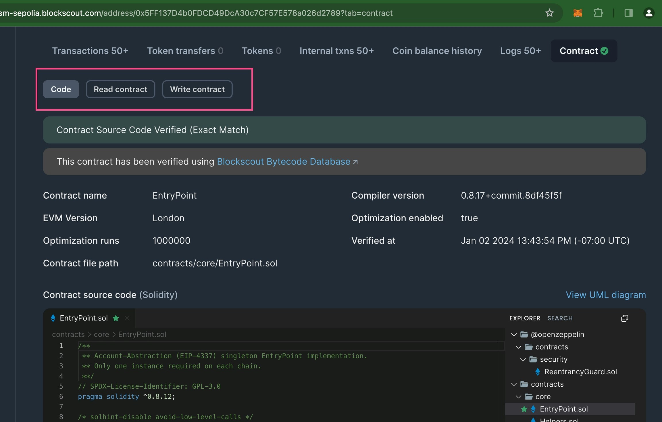 Go to your BlockScout instance and paste the contract address into the search bar.