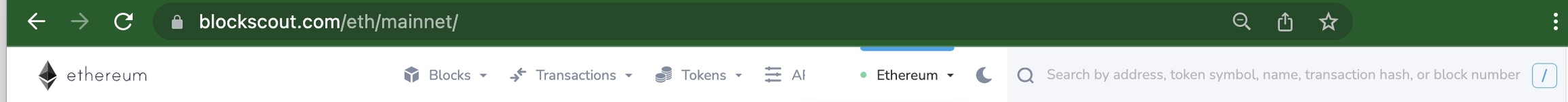 The comprehensive search bar allows for search by address, token name, token symbol, transaction hash, block number, tag or project name. It is typically the easiest way to find data quickly, and populates with inline results as you type.Custom Project Logo