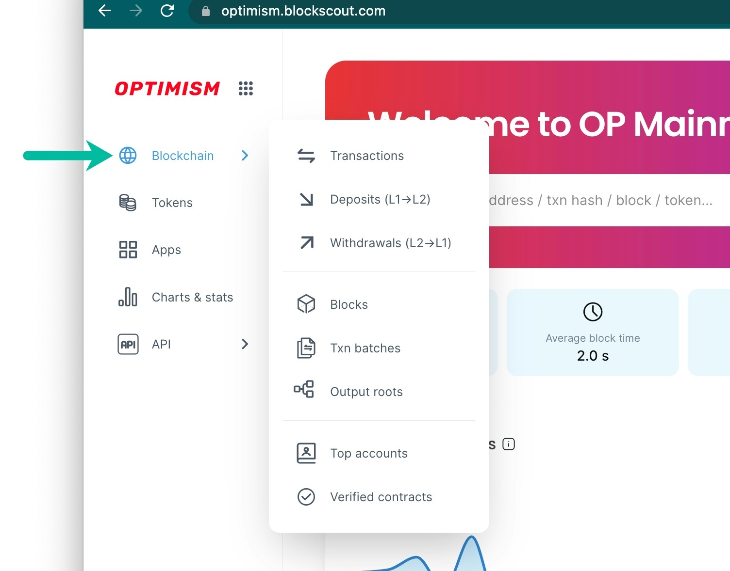 The following views are taken from the Optimism Blockscout instance.